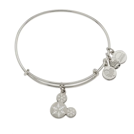 Mickey is shining with Snowflakes on this Mickey Icon Silver Alex and Ani Charm Bracelet.