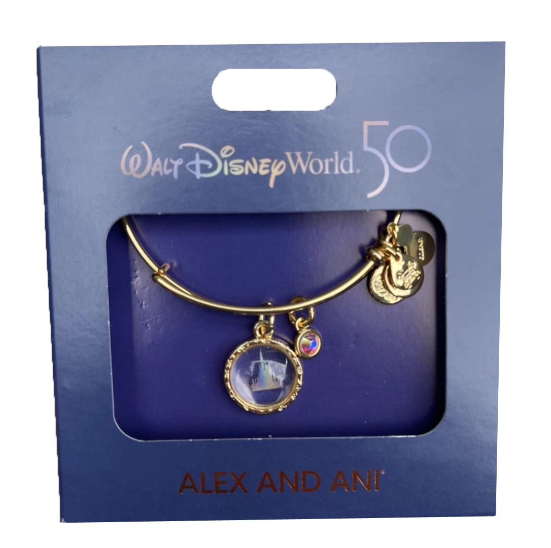 Celebrate Walt Disney World’s 50th Anniversary with this bangle by Alex and Ani. Fashioned in brass and fully adjustable, it features Cinderella’s Castle Globe Charm.