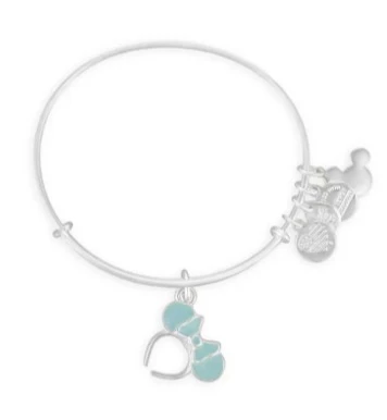 Accent your outfit with this Minnie Mouse ”Ear Headband” bangle by Alex and Ani featuring enamel details in Arendelle Aqua. Minnie’s iconic headwear is reproduced as a charming addition to this brass bracelet with silvertone finish.