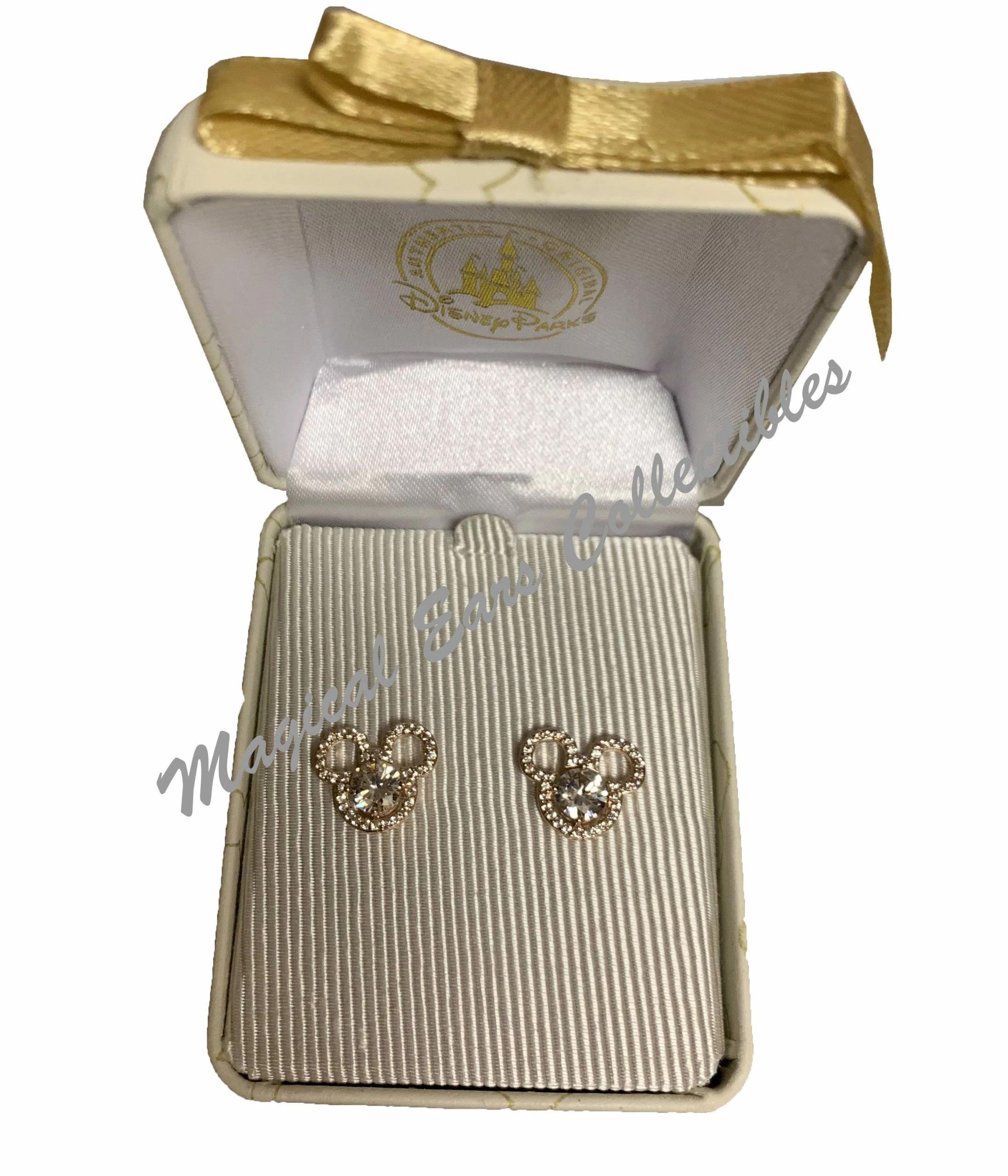 These beautiful post earrings features a Mickey Icon with tiny cut crystals around them and a bigger crystal in the middle and leaves a dimensional effect.