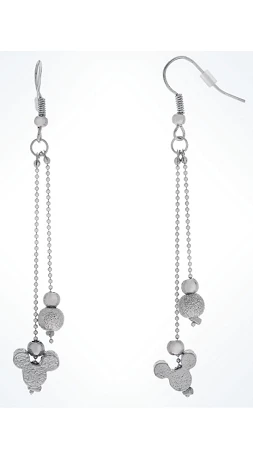 These elegant Mickey Icon and Bead Drop features a silver Mickey icon and Bead on these dangling earrings.