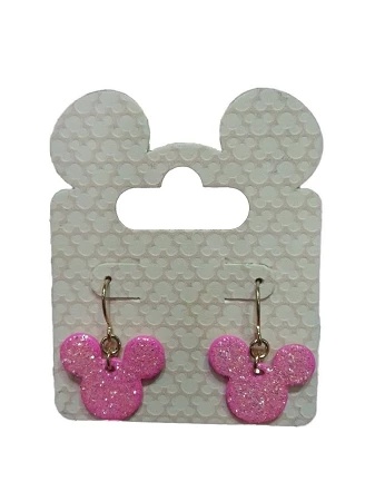 Bring some magic to your ears with these beautiful Mickey Mouse Icon Earrings, Features Mickey Mouse Icons full of Pink glitter on gold french wire hooks.