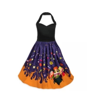 Tonight, you’ll fly in style wearing this bewitching dress inspired by the 1993 fan favorite Hocus Pocus. Conjure compliments with the Sanderson Sisters in tow on the skirt of this halter top dress featuring embroidered accents in back.