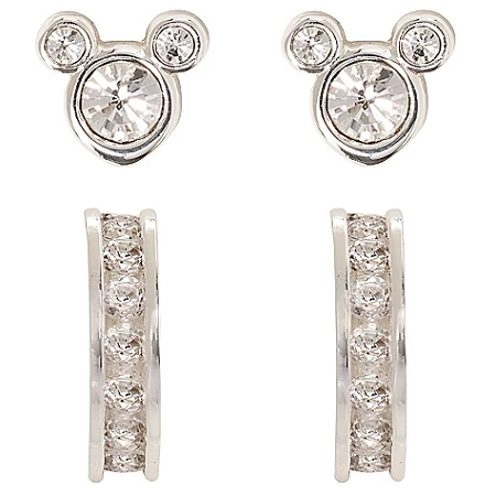 Choose your look with our Sparkling Mickey Mouse Earring Set. Featuring Mickey earrings adorned with crystals and cubic zirconia studded half-hoops, these stunning silver earrings can be worn separately or together to make a true fashion statement.