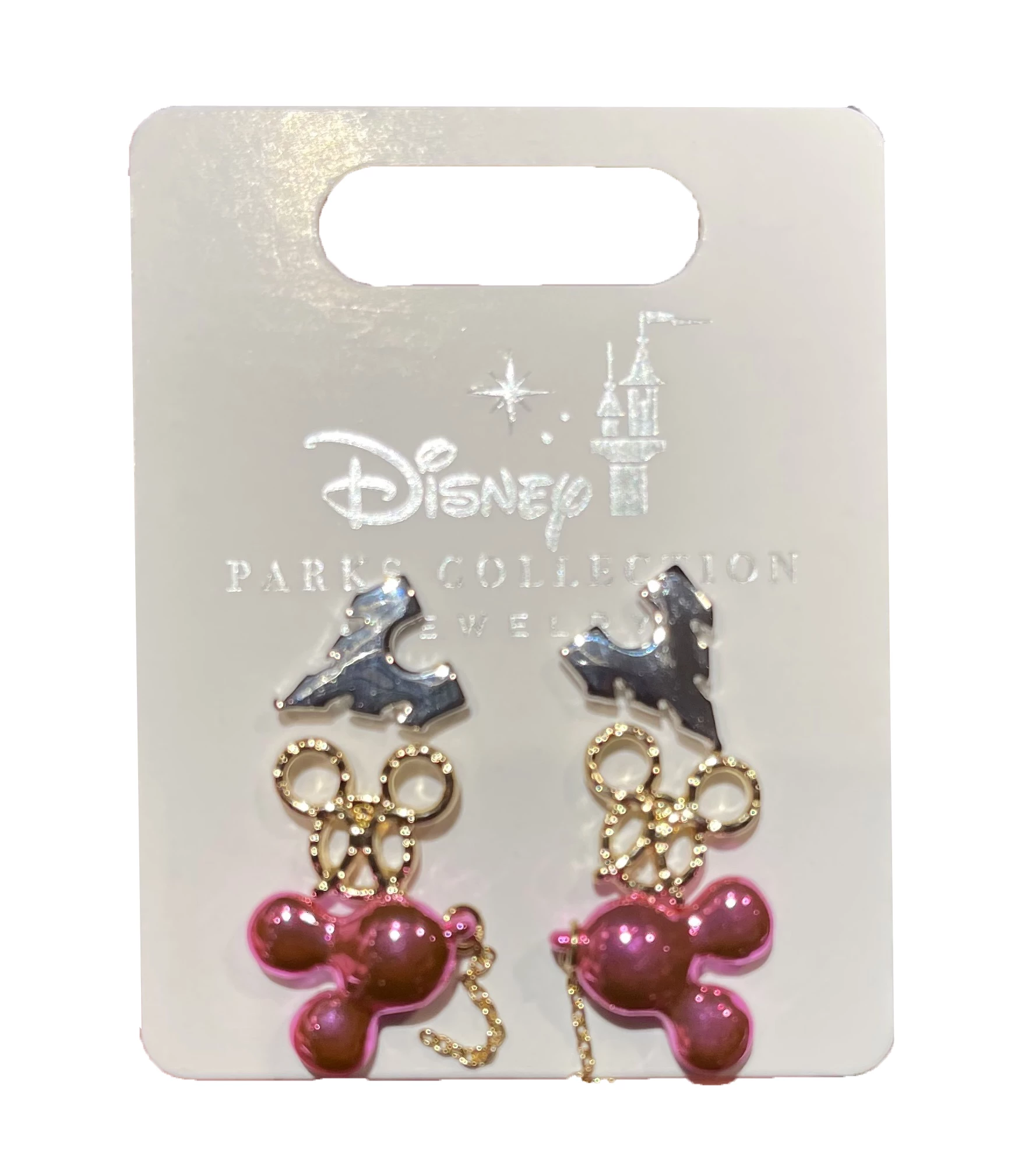 Mix and match Mickey style with this set of three different pairs of earrings. The three designs include Mickey Balloons, Mickey Pretzels, and Castle.