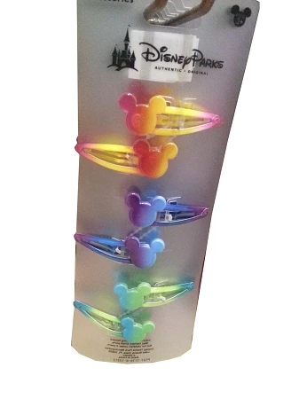 Dazzle up with our Authentic Disney Parks Mickey Mouse Icon Snap Hair Clips. Features colorful Mickey Icons on the end of each clip, and comes in a Set of 3.