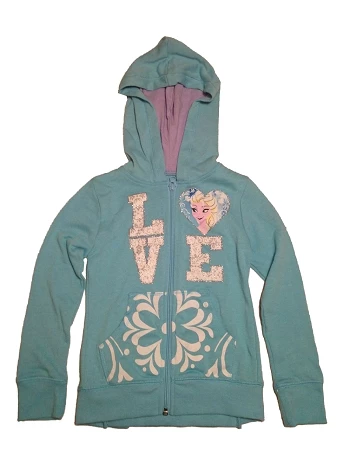 Let Elsa help take the chill off you this fall. This gorgeous Zip up Jacket is just the thing to do that. Features a heart shaped Elsa, and spells out LOVE across the front, outlined in glitter accents.