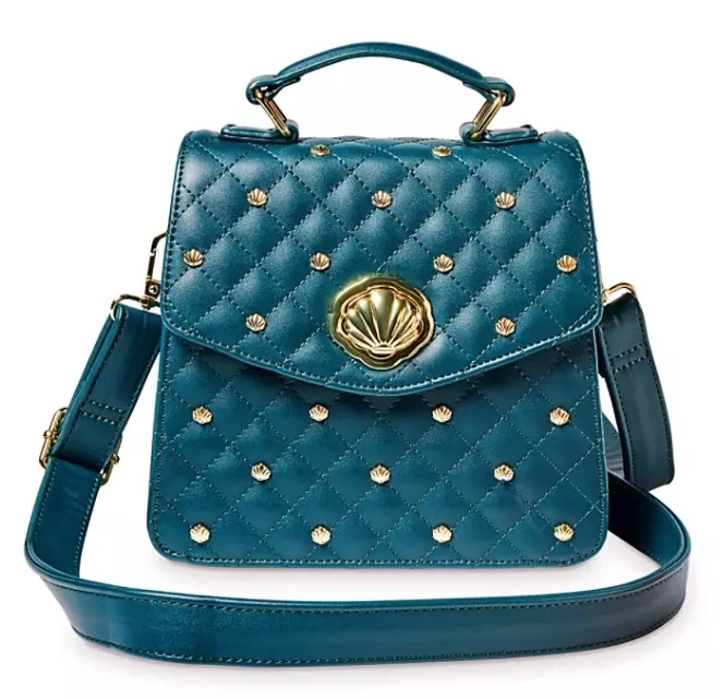 The quilted exterior and metal seashell rivets will make this faux leather crossbody bag by Loungefly a permanent part of your world. A seashell accent on the foldover flap, adjustable strap and top carry handle make this undersea chic an essential accessory.