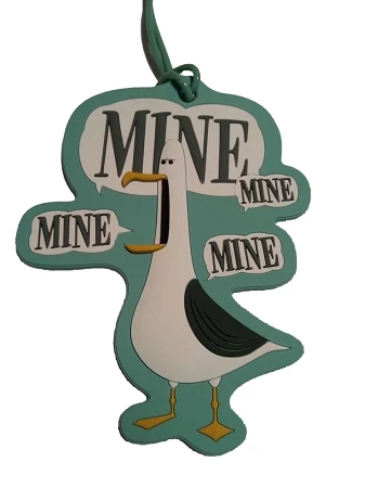 oversize ID travel tag displays a Seagull with the wording “Mine Mine Mine”