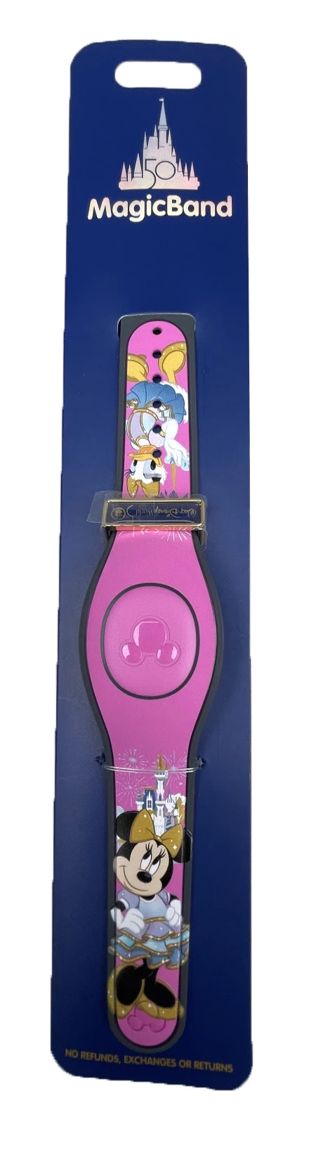 Celebrate Walt Disney World’s 50th Anniversary at Walt Disney World Resort wearing this MagicBand 2 design featuring Minnie & Daisy with castle and 50th clip. With a simple touch, redeem FastPass+, enter parks, charge purchases to your room, and more!