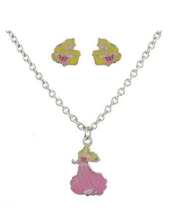 Your Princess with feel like a Princess with this Necklace and Earrings Set, with Princess Aurora.