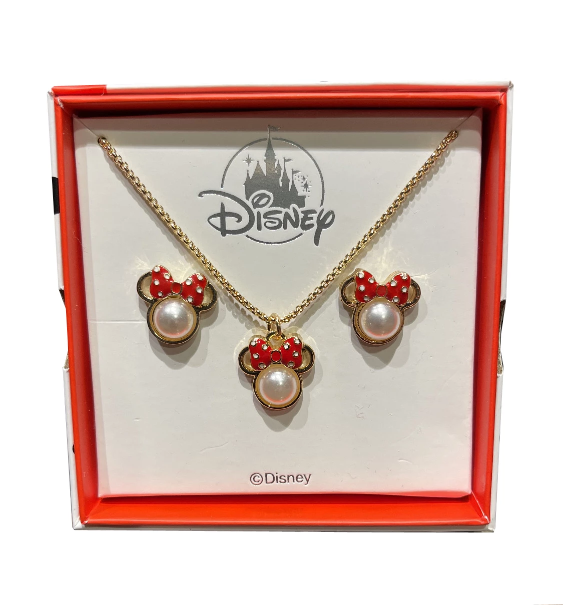 Dazzle up with this sweet Necklace and Earrings Set, with this Minnie Mouse Pearl Icons with Bows Set.