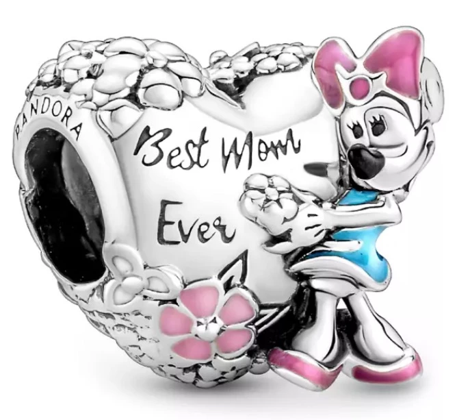 Show your love for a special mom in your life with this Mother’s Day charm from Pandora Jewelry. The dangling heart charm is accented with flowers and a colorful Minnie Mouse while the center of the charm is engraved with ”Best Mom Ever” so she has a constant reminder of your appreciation.