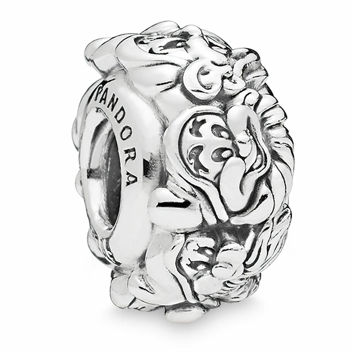 hand with this Seven Dwarfs Charm by PANDORA. The faces of Dopey,