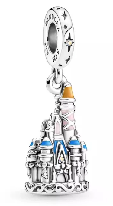 Celebrate the anniversary of The Most Magical Place on Earth with this sterling silver dangle charm by Pandora Jewelry. The sculpted Fantasyland Castle is accented with glittering cubic zirconia and colorful enamel details.
