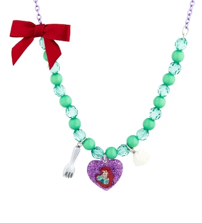 Your Princess will adore this Princess necklace. Features a beaded necklace with a sparkling Ariel heart charm with a Seashell and dinglehopper.