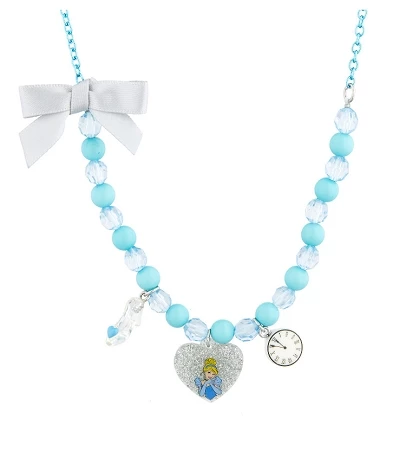 necklace. Features a beaded necklace with a sparkling Cinderella heart charm