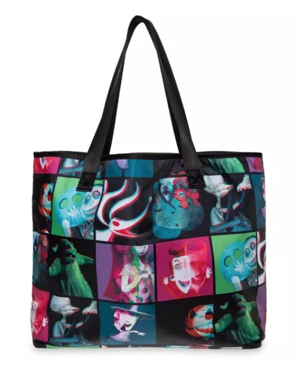 This bag inspired by Tim Burton’s The Nightmare Before Christmas if frightfully fun. It features a Jack Skellington design on one side and reverses to a pattern of notable characters from the movie in a holographic design.