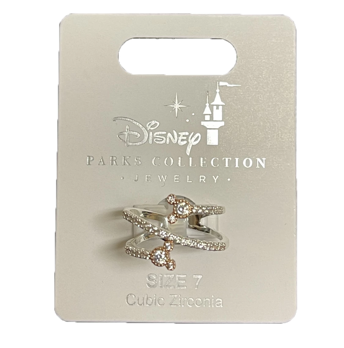 This gorgeous ring will brighten your smile. Features Cubic Zirconia around the band with 2 Mickey Icons, in a Silver color.Â