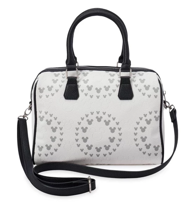 Disney’s original black and white movie star, Mickey Mouse, has his iconic silhouette forming the geometric pattern on this black and white satchel. Fashioned in faux leather, the stylish design includes a detachable shoulder strap for added versatility.