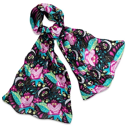 Dazzle up with this sweet scarf with Cheshire Cat images throughout. This Rayon scarf will sure to make a fashion statement.