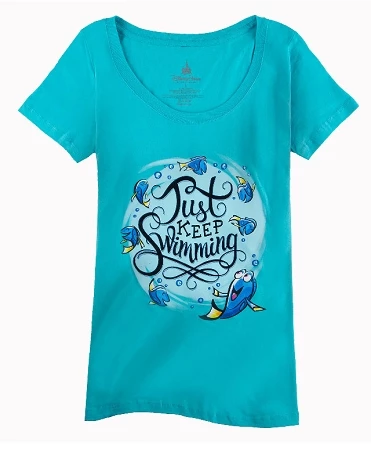 Get fashionable and comfortable in this Finding Dory Just Keep Swimming top, Featuring Dory.