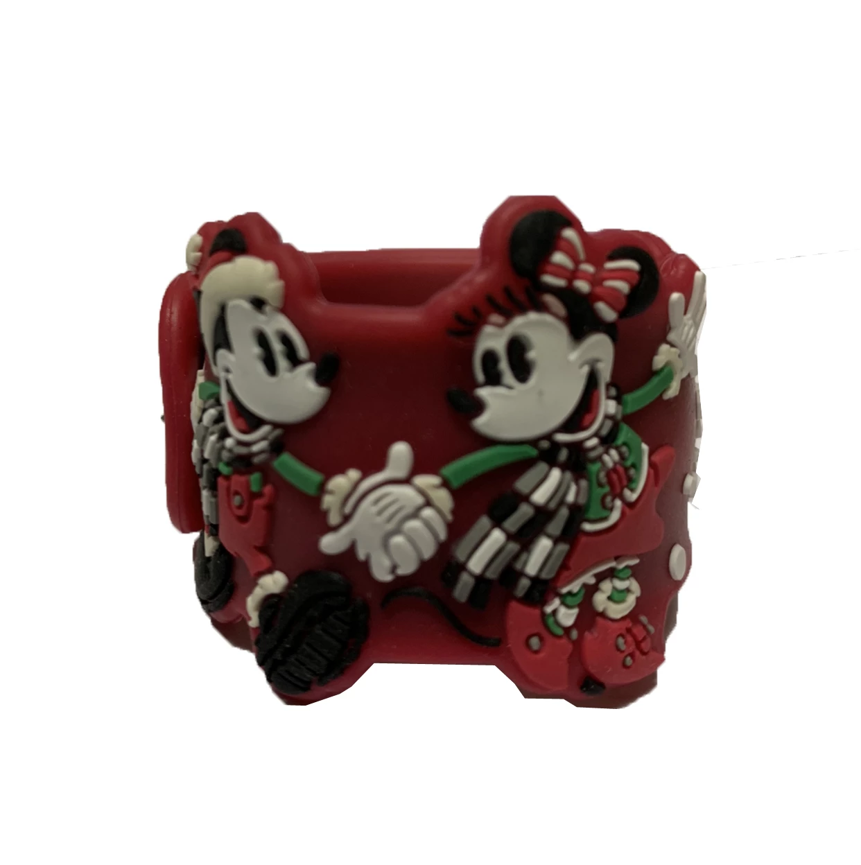 Slap on this Silicone Slap Bracelet with this fun design. Features Holiday Mickey and Minnie Mouse with Christmas Lights and Snowflakes.Â