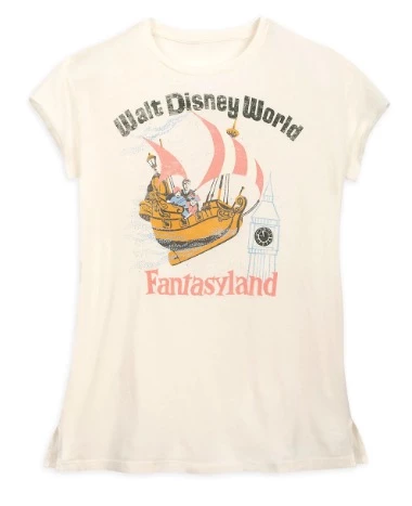 ”Come on everybody, here we go” on a flight over Fantasyland aboard a personal pirate galleon. This pixie-dusted Walt Disney World tee will make the wearer feel forever young at heart.