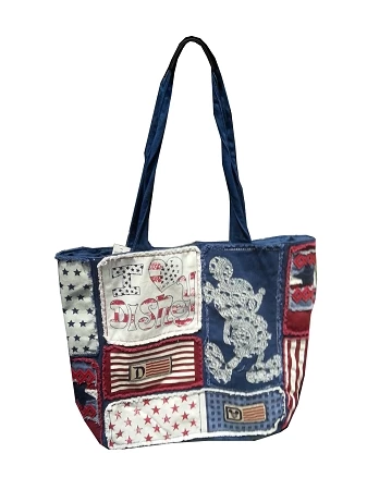 features Mickey Mouse in Red, White and Blue, Along with a I Love Disney patch, and Stars and Stripes on a blue denim. This fine