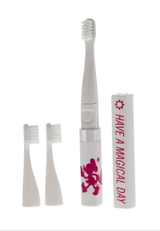Pack easy with this White TAG Travel Minnie Mouse Electric Toothbrush, with cover, and a extra brush.