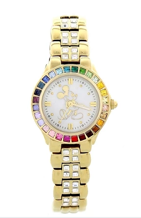 bezel and band are complemented by the golden Mickey face and links.