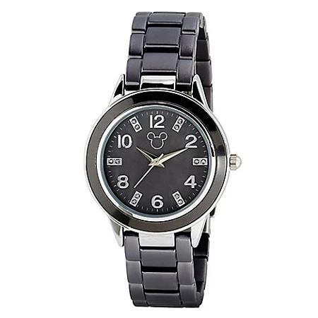 Countdown the minutes to your next Disney Parks visit with this sporty watch featuring gray tinted metal link band with complementary dial and casing trim. A subtle Mickey icon makes everyone’s day!