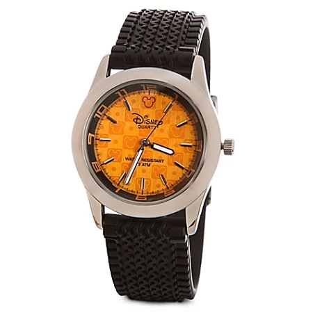 You’ll be racing towards magical moments no matter the time of day thanks to our durable Mickey Mouse Watch featuring a PVC tire tread wrist strap and orange Mickey Mouse icons on the watch face.